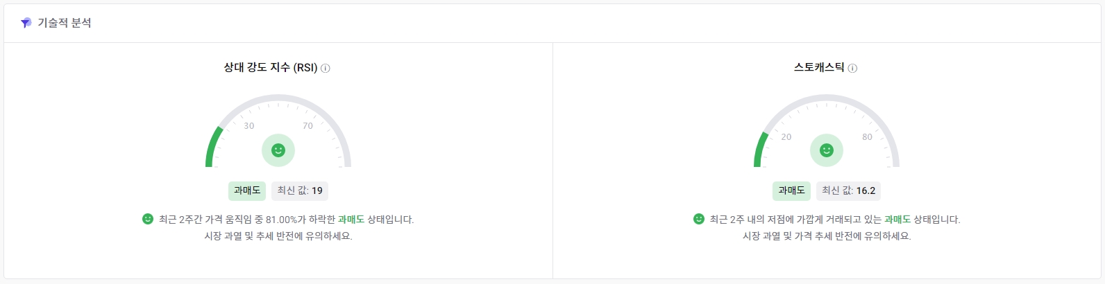 그래도 계속되는 하락에 샌드박스는 현재 거래량이 나오지 않아 RSI는 과매도 상태, 스토캐스틱도 과매도 상태로 두 지표가 모두 20 아래로 떨어졌으므로 매수를 결정하신 분들은 반드시 분할 매수의 관점으로 접근하시길 바랍니다. 위와 종합하여 봤을 때 하락 압력이 아직 조금 남아 있지만, 과매도 상태고, 이전 지지선 부근까지 와줬으니 관심을 두고 계셨던 분들은 분할 매수의 관점으로 바라보는 게 좋을 것 같다는 관점 드리면서 오늘 샌드박스 코인의 포스팅을 마무리 짓도록 할게요.